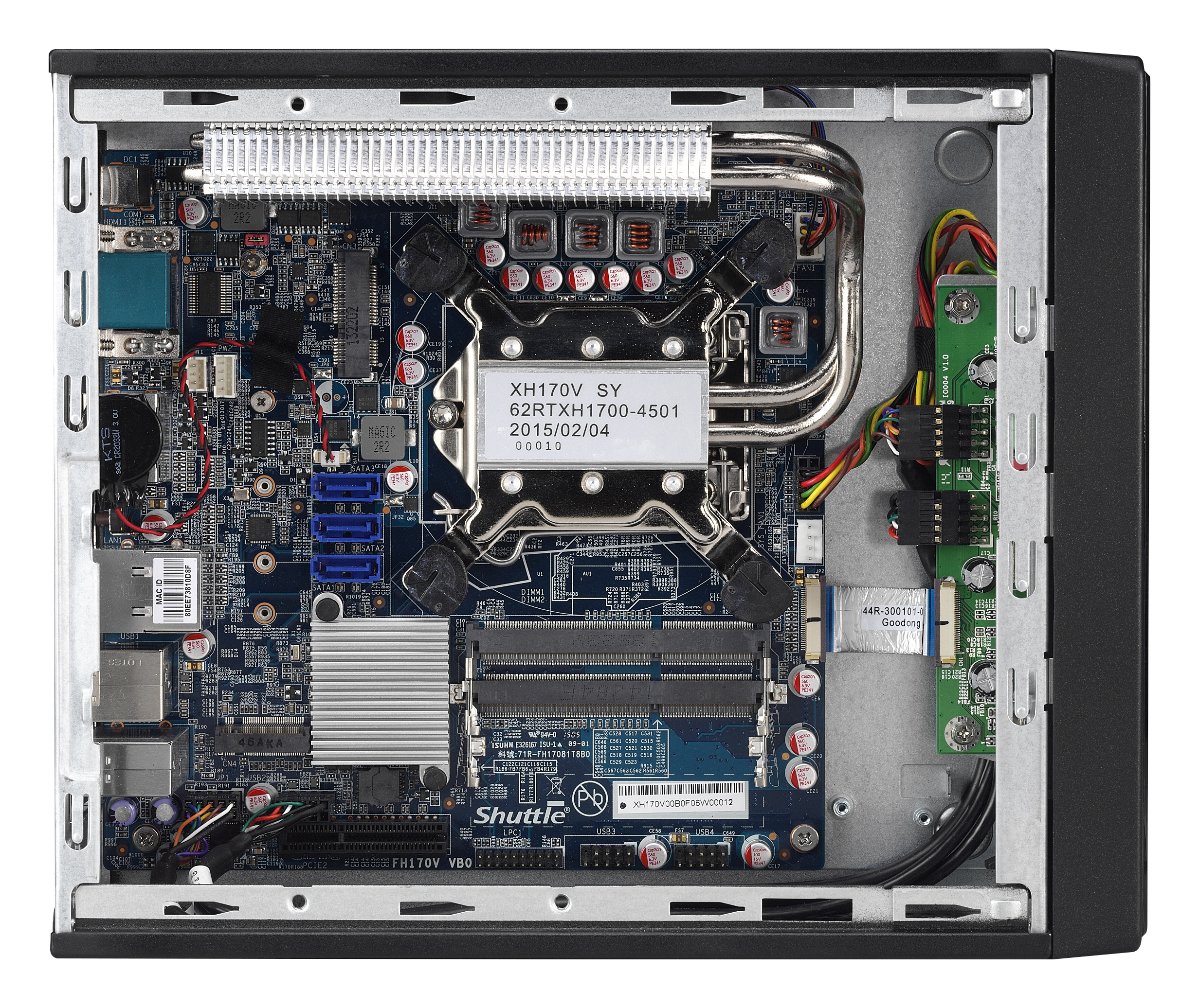 The ultra-compact Shuttle XPC slim Barebone XH170V is an ideal basis for a small, but powerful Mini PC. Not only is it suitable for a low-noise home-media PC with support of 4K displays, it also meets the requirements towards an office PC and industrial applications. It allows for operating three displays at the same time, features an Intel network chip and a useful "Always-on-Jumper" for auto-start after power-fail. In a team with 14nm socket LGA1151 Intel "Skylake" processor and a SSD drive the XH170V makes for a power-efficient and reliable system for a wide range of applications. The built-in heatpipe cooling ensures the system runs quietly at maximum stability.
